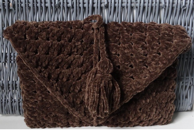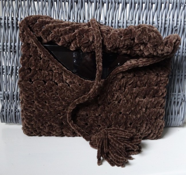 Entièrement fait main au crochet avec du fil " chenille " couleur " chocolat ".